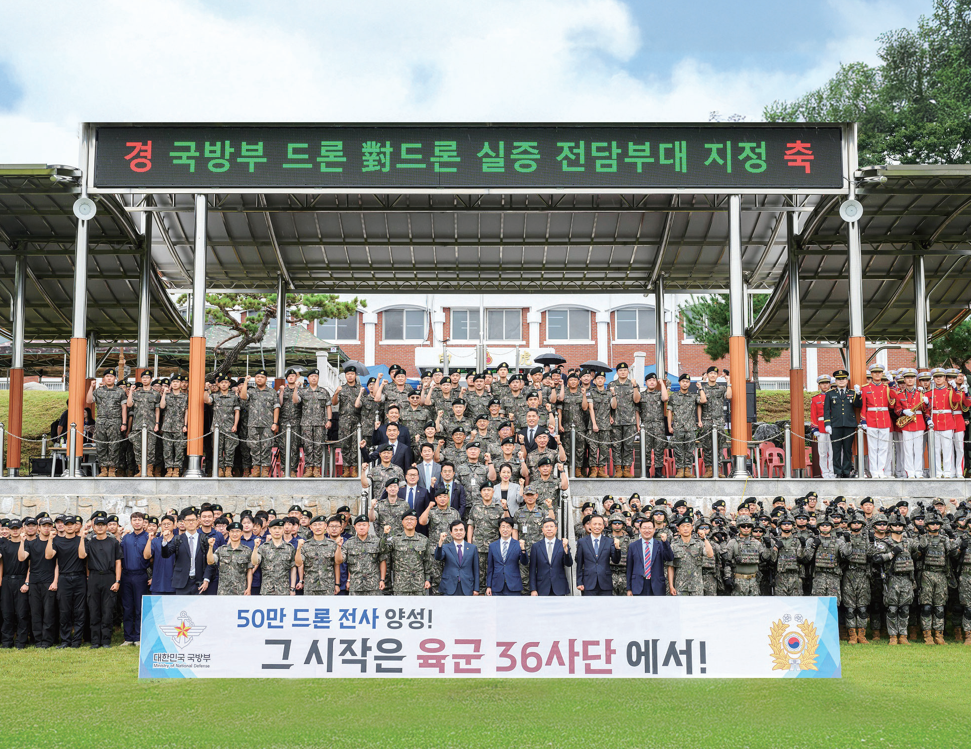 안규백 국방부 장관은 지난달 4일 오전, 육군 제36사단을 방문해 50만 드론전사 양성을 위한 소형 드론‧대드론 분야 실증 전담부대를 최초 지정하고 본격적인 50만 드론전사 양성 추진을 선언했다.