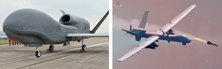 이 모든 것은 북한군의 군사혁신 이론으로 추정되는 ‘정찰-타격 복합체 이론’의 실전 구현 가능성을 대내외에 과시하는 것으로 볼 수 있다. 북한은 이들 드론들의 비행 장면, 무장 발사 장면들을 공개하면서 결코 이들 드론들이 허상이 아니며 실존적 위협 임을 과시한 것이다. 북한의 이러한 급속한 군사 기술 발전의 중심에는 김일성종합대 학과 김정은 국방종합대학이 있다. 이 두개 대학은 대외적으로 대북제재가 정상 가동 중일 것이라는 기대와는 달리 다양한 민간 학술교류 등을 통하여 선진적인 과학 기술을 습득하고 있으며 무인기 전력화를 위한 요구 성능, 소프트웨어 개발 및 탑재, 무인 전법 개발 등을 활발하게 진행 중에 있다. 이러한 북한군의 드론 전력 발전은 이제 러-우 전쟁 참전 대가로 러시아로부터 이전 중인 드론 기술과 북한군의 실전 경험이 더해지면서 북한의 재래식 전력 현대화는 전례를 찾아보기 힘든 속도로 가속화되고 있다. 이러한 북한군의 현대화 가속에 중심에 있는 드론 전력은 군종 별론 공군용과 육군용으로 구분되며 전략 전술적 구분에서는 전략-작전-전술 드론으로 구분할 수 있다. 또한, 드론의 용도적 측면에서는 정찰용과 공격용, 자폭용으로 구분된다.