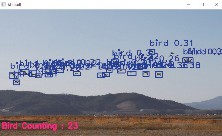 새떼 무리 AI 객체 인식 카운팅 테스트 장면